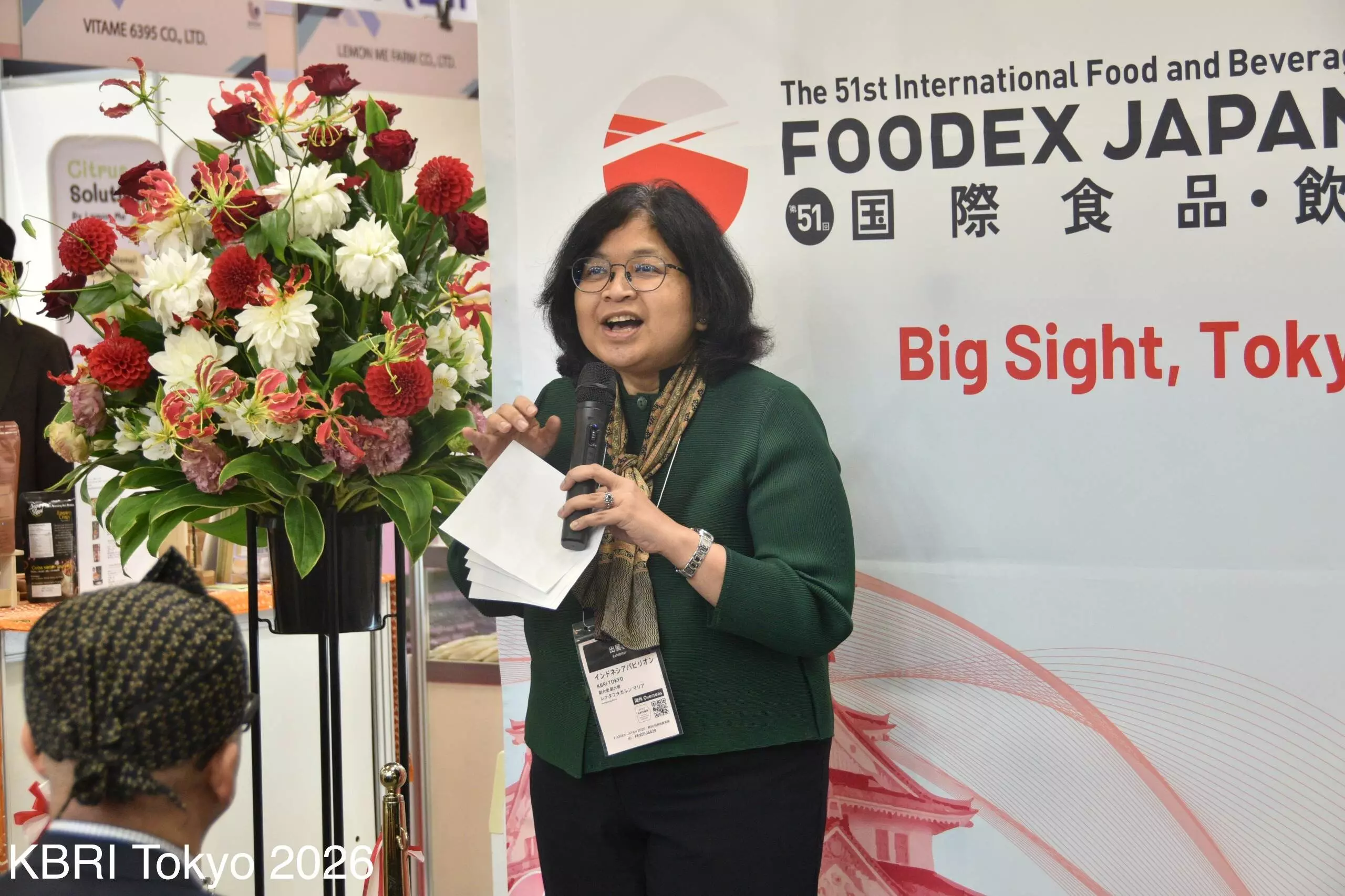 “Partisipasi kami di Foodex Japan 2026 mencerminkan komitmen kuat Indonesia untuk memperluas jejaknya di pasar Jepang dan global. Indonesia memandang Foodex Japan sebagai platform penting untuk memperkuat dan mempertahankan kehadiran produk Indonesia di pasar Jepang. Saya sangat senang bahwa tahun ini paviliun kami menampilkan produk dari 28 perusahaan dan UKM Indonesia yang luar biasa. Jepang selalu menjadi mitra kunci bagi Indonesia, dengan hubungan perdagangan bilateral yang terus tumbuh semakin kuat. Ekspor makanan, minuman, dan produk pertanian Indonesia ke Jepang terus tumbuh, mencapai USD 2,13 miliar, meningkat 5 persen dibandingkan tahun sebelumnya,” ujar Wakil Kepala Perwakilan RI Tokyo Maria Renata Hutagalung saat membuka Paviliun Indonesia dalam FOODEX Japan 2026.