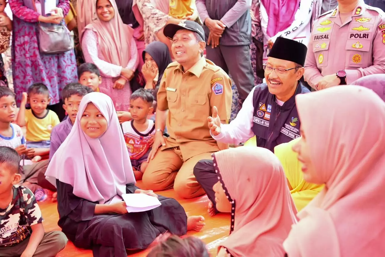 Gus Ipul juga berdialog dengan anak-anak sambil menanyakan cita-cita dan harapan mereka. Ia mengajak anak-anak bernyanyi dan bersalawat bersama untuk memulihkan semangat mereka pascabencana.