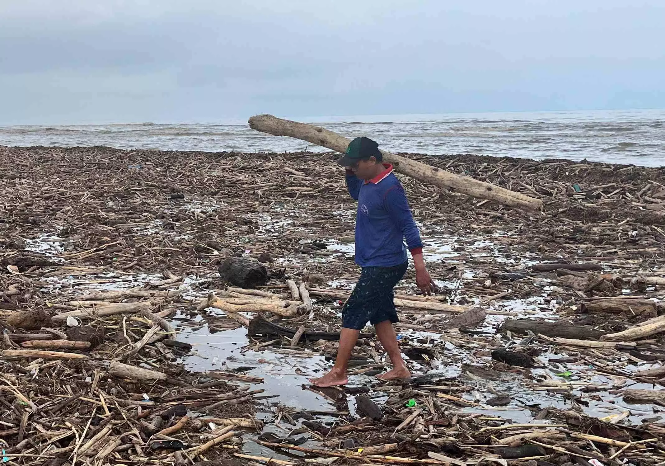 Ia menambahkan, kayu-kayu tersebut diduga berasal dari pohon yang tumbang akibat cuaca ekstrem, kemudian terbawa aliran air dari wilayah hulu hingga akhirnya terdampar di Pantai Larangan.