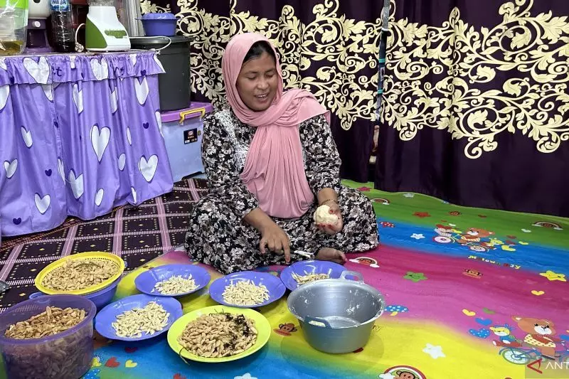 Di tengah keterbatasan, aktivitas membuat kue di huntara pada Rabu, terlihat dilakukan secara sederhana di dapur sederhana huntara dengan peralatan seadanya. Salah seorang penyintas, Yeni (44), mengatakan sebagian besar bahan yang digunakan berasal dari bantuan, sementara kebutuhan tambahan hanya dibeli secukupnya.