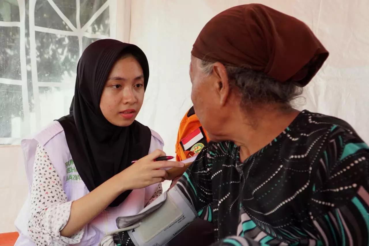 Badan Amil Zakat Nasional (BAZNAS) RI melalui Rumah Sehat BAZNAS (RSB) memberikan layanan kesehatan gratis bagi masyarakat korban banjir di wilayah Tegal Luhur, Desa Sukamakmur, Telukjambe Timur, Kabupaten Karawang, Jawa Barat.