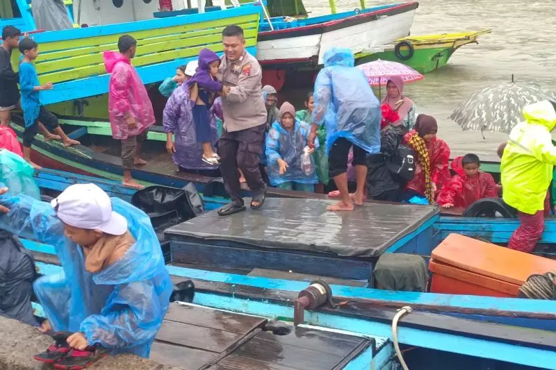 "Kita mengevaluasi sekitar 70 orang warga yang terjebak menggunakan tiga kapal nelayan tradisional menuju Dermaga Air Bangis, Kecamatan Sungai Beremas," kata Kepala Satuan (Kasat) Pol Air Polres Pasaman Barat AKP Afjon di Simpang Empat.
