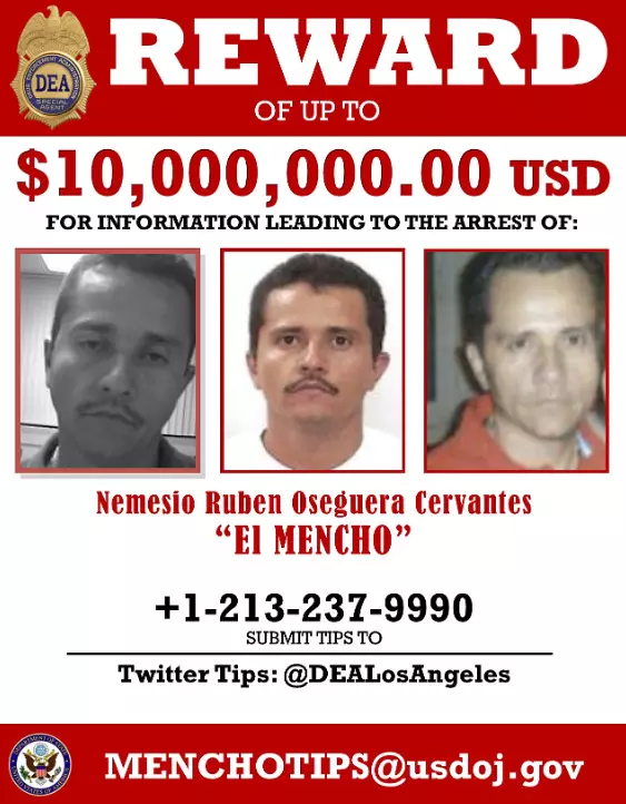 Poster buronan Nemesio Oseguera Cervantes alias El Mench. (Sumber: Wikipedia)