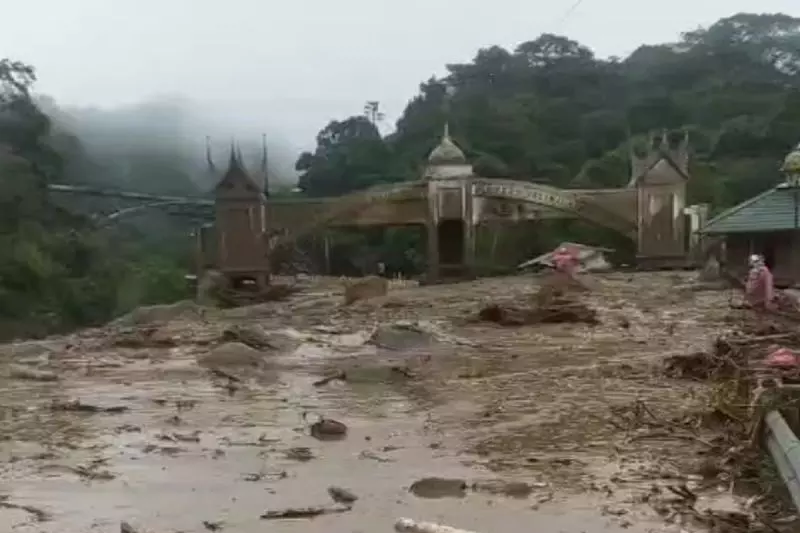 Terjangan galodo atau banjir bandang yang membawa material tanah, lumpur, dan bebatuan, menimbun jalan nasional Padang - Padang Panjang, tepatnya di gerbang Kota Padang Panjang, Tanah Datar, dan Jembatan Kembar menuju Lembah Anai pada Kamis.