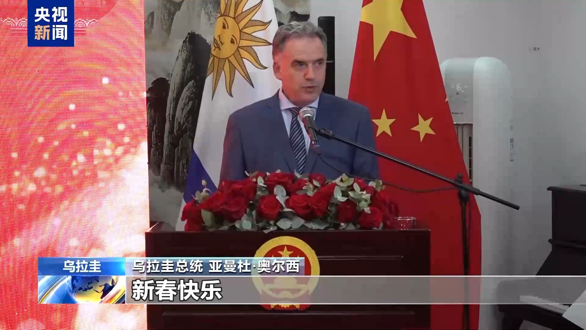 Presiden Uruguay Amanda Orsi menyatakan dirinya mengucapkan Selamat Tahun Baru Imlek kepada seluruh rakyat Tiongkok dan Uruguay. Terima kasih banyak, Selamat Tahun Baru Imlek kepada Anda semua!