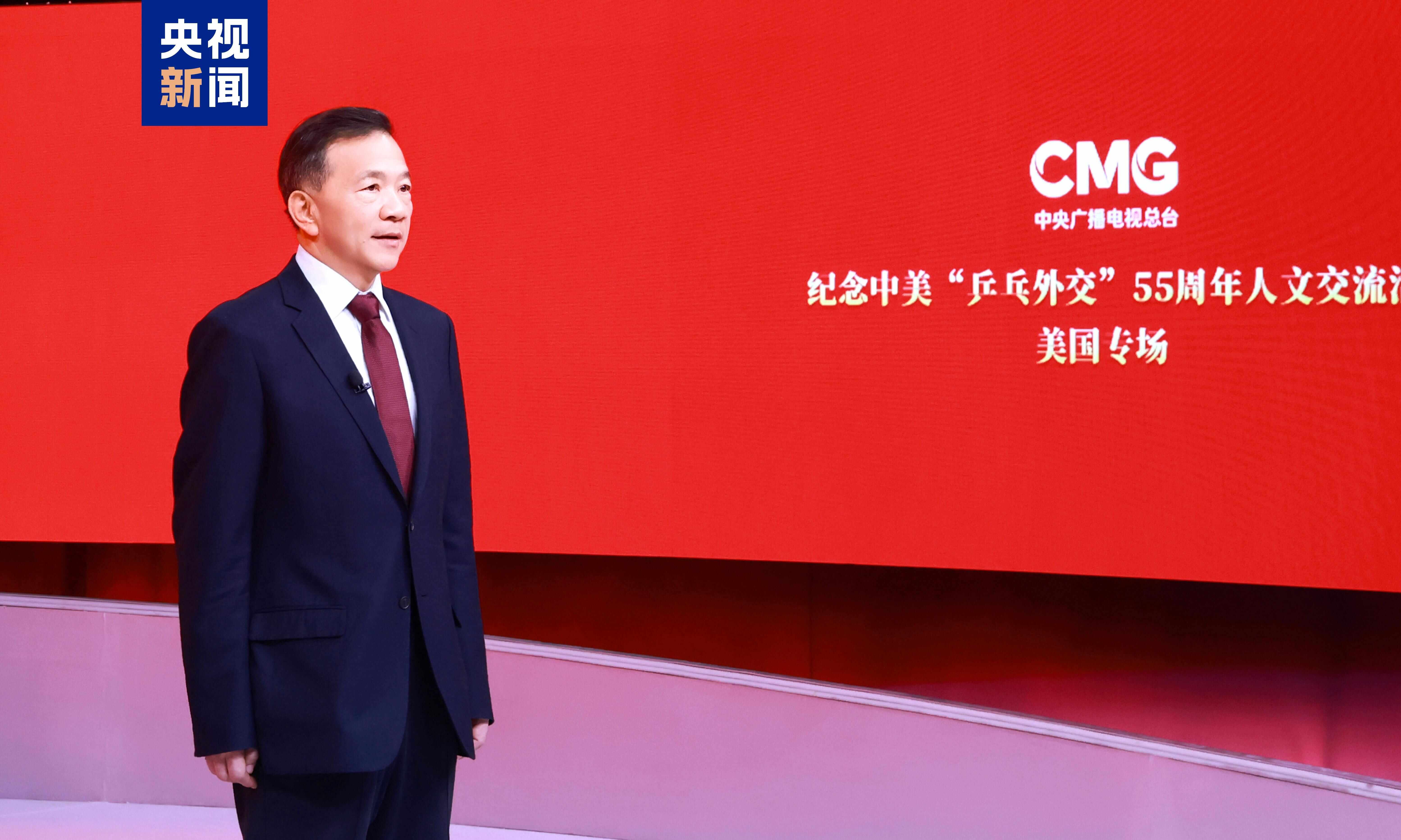 Shen Haixiong menyatakan bahwa 55 tahun yang lalu, sebuah bola pingpong kecil telah membuka pintu saling pengertian antara rakyat Tiongkok dan AS, menulis kisah indah tentang “bola kecil yang menggerakkan bola besar”.