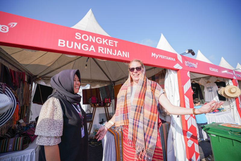 Berbagai pengunjung yang hadir, termasuk dari mancanegara, antusias melihat UMKM binaan Pertamina. Salah satunya Susie Gait asal Inggris, ia membeli songket khas Lombok dan mengungkapkan ketertarikannya terhadap produk-produk Indonesia.