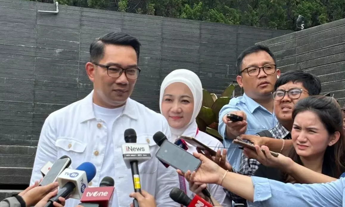 Arsip - Mantan Gubernur Jawa Barat Ridwan Kamil bersama Atalia Praratya saat memberikan keterangan di Kota Bandung, Jawa Barat. ANTARA/Rubby Jovan