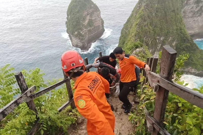 Basarnas Bali mengevakuasi Warga Negara Asing (WNA) Republik Ceko yang cedera di Pantai Kelingking, Nusa Penida, Kabupaten Klungkung.