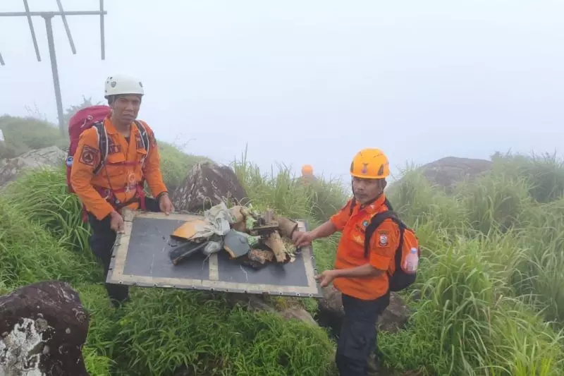 Tim Gabungan mendapatkan serpihak dari Pesawat ATR 42-500 di Gunung Bulusaraung, Pangkep-Maros, Sulsel, Minggu (18/1/2026). ANTARA/HO-BPBD Makassar