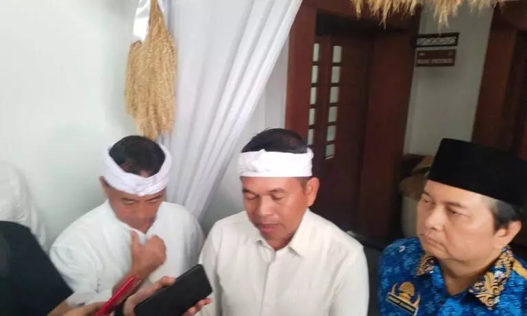 Gubernur Jawa Barat Dedi Mulyadi memberikan keterangan di Gedung Sate Bandung. (ANTARA/Ricky Prayoga)