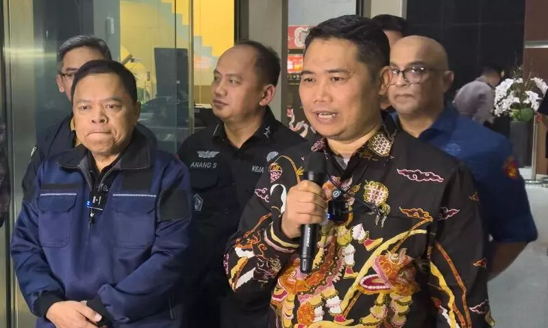 Pelaksana Tugas Deputi Penindakan dan Eksekusi Komisi Pemberantasan Korupsi Asep Guntur Rahayu (kanan) bersama Plt. Sekretaris Jaksa Agung Muda Intelijen Kejaksaan Agung Sarjono Turin (kiri) dan Kepala Pusat Penerangan Hukum Kejagung Anang Supriatna memberikan keterangan di Gedung Merah Putih KPK, Jakarta, Kamis (18/12/2025). (ANTARA/Rio Feisal)