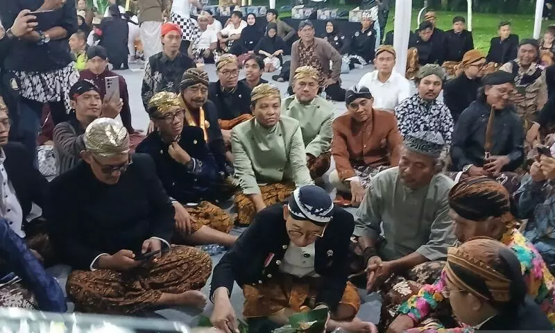 Menteri Kebudayaan Fadli Zon lembul bujono pada Kirab Pusaka Nusantara di Candi Borobudur, Jumat (17/4/2026) malam. ANTARA/Heru Suyitno