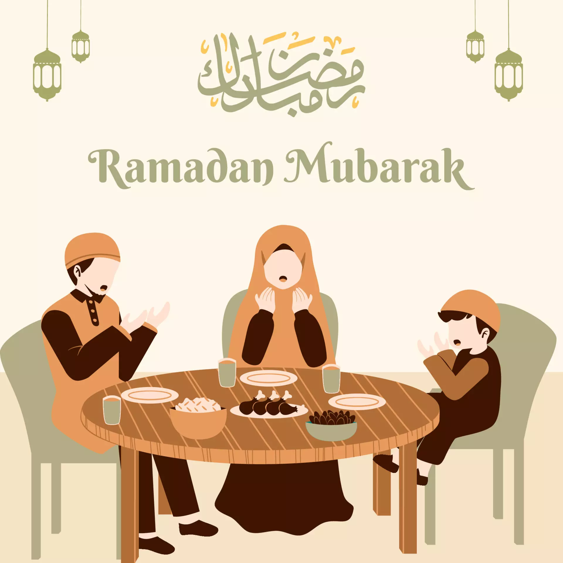Ilustrasi keluarga muslim yang sedang berpuasa. (sumber: Vecteezy)