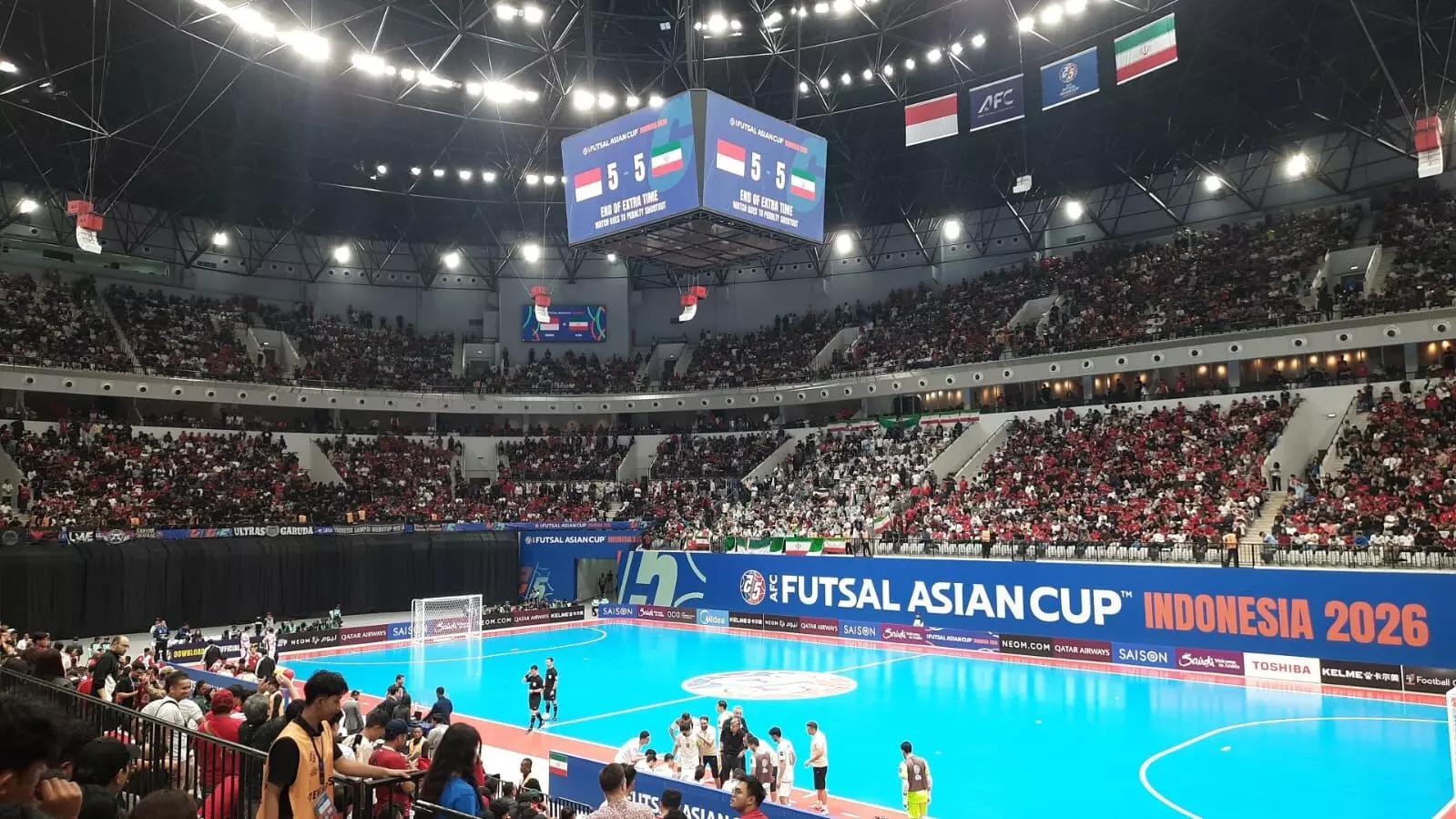 Elshinta/ FarisFinal AFC Futsal 2026 antara Timnas Futsal Indonesia dan Iran benar-benar mencapai puncak drama. Hingga babak tambahan waktu kedua berakhir, skor tetap imbang 5-5, memaksa laga penentuan gelar juara dilanjutkan ke adu penalti di Indonesia Arena, Jakarta, Jumat (7/2/2026).