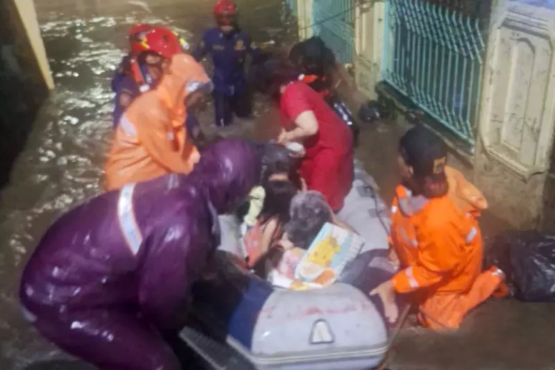 Petugas Suku Dinas Penanggulangan Kebakaran dan Penyelamatan (Gulkarmat) Jakarta Timur (Jaktim) mengevakuasi enam warga terdampak banjir di wilayah Cibubur, Ciracas, pada Sabtu (21/3/2026) malam. ANTARA/HO-Sudin Gulkarmat Jakarta Timur.
