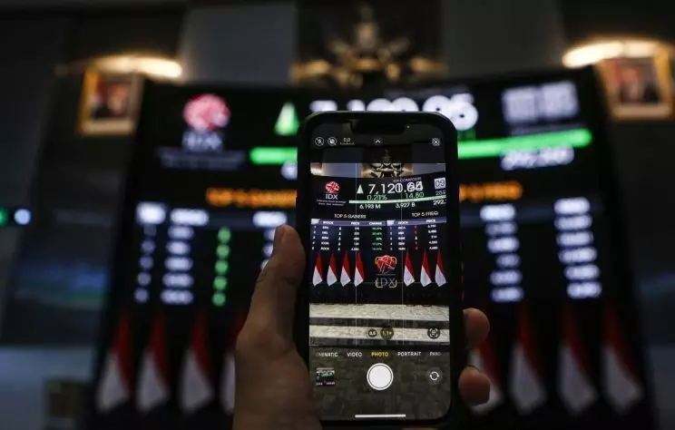 Pengunjung memotret layar yang menampilkan pergerakan Indeks Harga Saham Gabungan (IHSG) di Bursa Efek Indonesia, Jakarta, Rabu (25/3/2026). Usai libur Lebaran, IHSG sempat melemah 22,22 poin atau 0,31 persen ke level 7.084,62 dan bergerak berbalik arah menguat 1,05 persen atau naik 75 poin ke level 7.181,65 setelah beberapa menit dibuka. ANTARA FOTO/Asprilla Dwi Adha/tom. (ANTARA FOTO/ASPRILLA DWI ADHA)