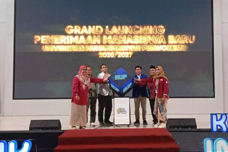 Saat peluncuran penerimaan mahasiswa baru tahun akademik 2026/2027 dalam acara OSIS Student Summit 2025 di Auditorium Ukhuwah Islamiyah UMP, Kabupaten Banyumas, Jawa Tengah, Sabtu (20/12/2025). ANTARA/Sumarwoto.