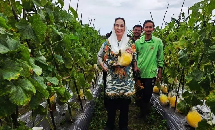 Cen Sui Lan saat melakukan panen melon bersama petani di Desa Harapan Jaya, Kecamatan Bunguran Tengah, Sabtu (27/12), mengatakan Pemkab Natuna tengah menyiapkan langkah agar hasil panen petani dapat dipasarkan ke Satuan Pelayanan Pemenuhan Gizi (SPPG) yang telah beroperasi di Natuna.