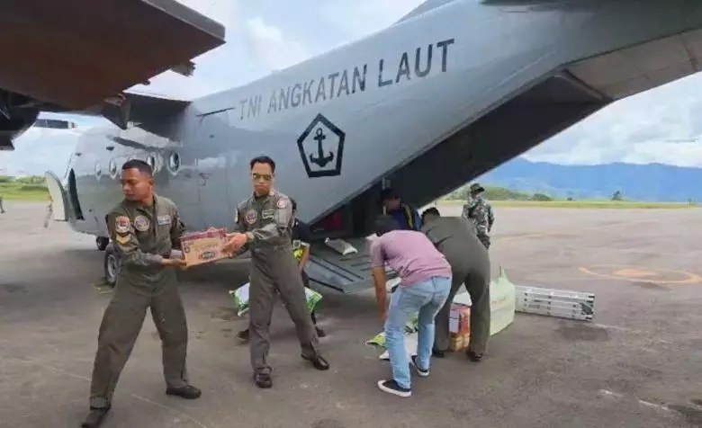 "Pengiriman bantuan yang dilaksanakan dalam dua kali penerbangan (sortie). Sortie pertama membawa 1.200 kilogram logistik berupa beras, sarden, dan susu," kata Tunggul.