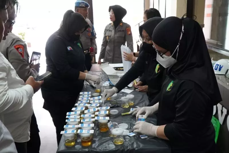 Proses pengambilan sampel urine dilakukan terhadap perwira, bintara, hingga Aparatur Sipil Negara (ASN) Polri di lingkungan Polres, dan diuji langsung oleh tim medis dari Seksi Kedokteran dan Kesehatan (Dokkes).
