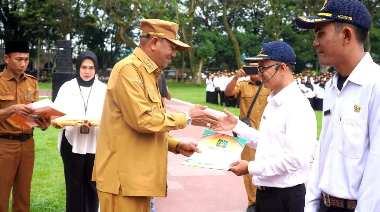 Bupati Langkat, Sumatera Utara Syah Afandin, secara resmi menyerahkan Keputusan Pengangkatan 3.798 Pegawai Pemerintah dengan Perjanjian Kerja (PPPK) paruh waktu, di Alun Alun T. Amir Hamzah, Stabat, Kabupaten Langkat, Selasa (30/12).