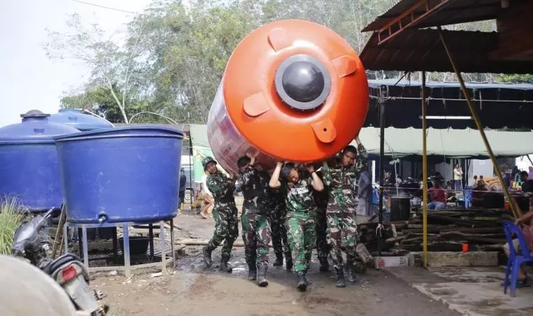 TNI bersama Universitas Pertahanan RI menyalurkan mesin penjernih air untuk digunakan para korban bencana di posko pengungsian Desa Batu Hula, Kecamatan Batangtoru, Sumatra Utara. Dalam siaran pers resmi yang diterima di Jakarta, Minggu, dijelaskan bahwa mesin tersebut berfungsi mengubah air kotor menjadi air bersih yang layak dikonsumsi.