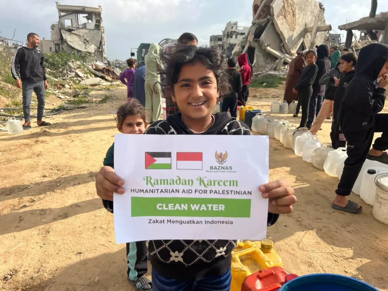 Badan Amil Zakat Nasional (BAZNAS) RI telah mendistribusikan 100.000 liter air bersih di Al Jalaa region, Gaza, Palestina. Program ini bertujuan untuk membantu memenuhi kebutuhan air bersih bagi 2.500 jiwa warga Palestina yang terdampak krisis air.