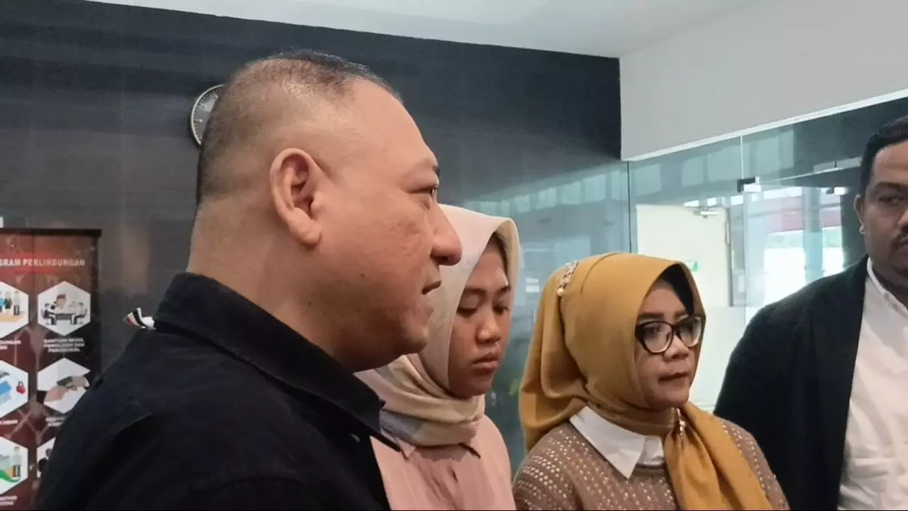 Lisnawati, ibu kandung NS, anak korban KDRT mengajukan permohonan perlindungan ke LPSK, Jumat (27/2/2026), didampingi kuasa hukumnya