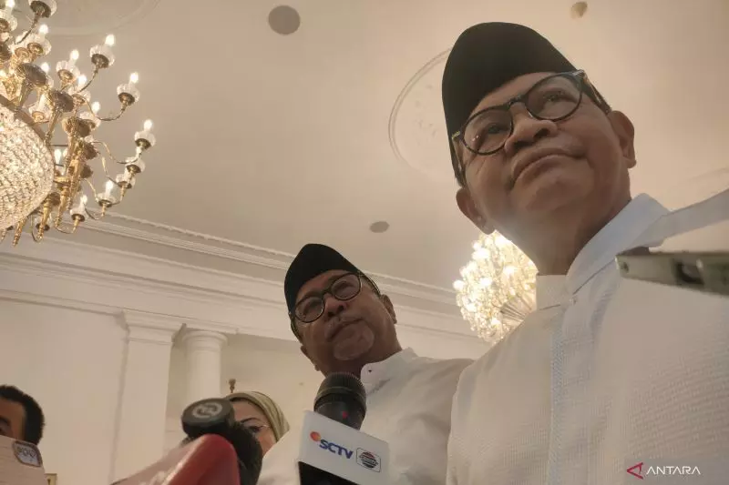 Gubernur DKI Jakarta Pramono Anung dan Wakil Gubernur Rano Karno memberikan keterangan kepada wartawan di pendopo Balai Kota, Jakarta, Sabtu (21/3/2026). ANTARA/Risky Syukur.