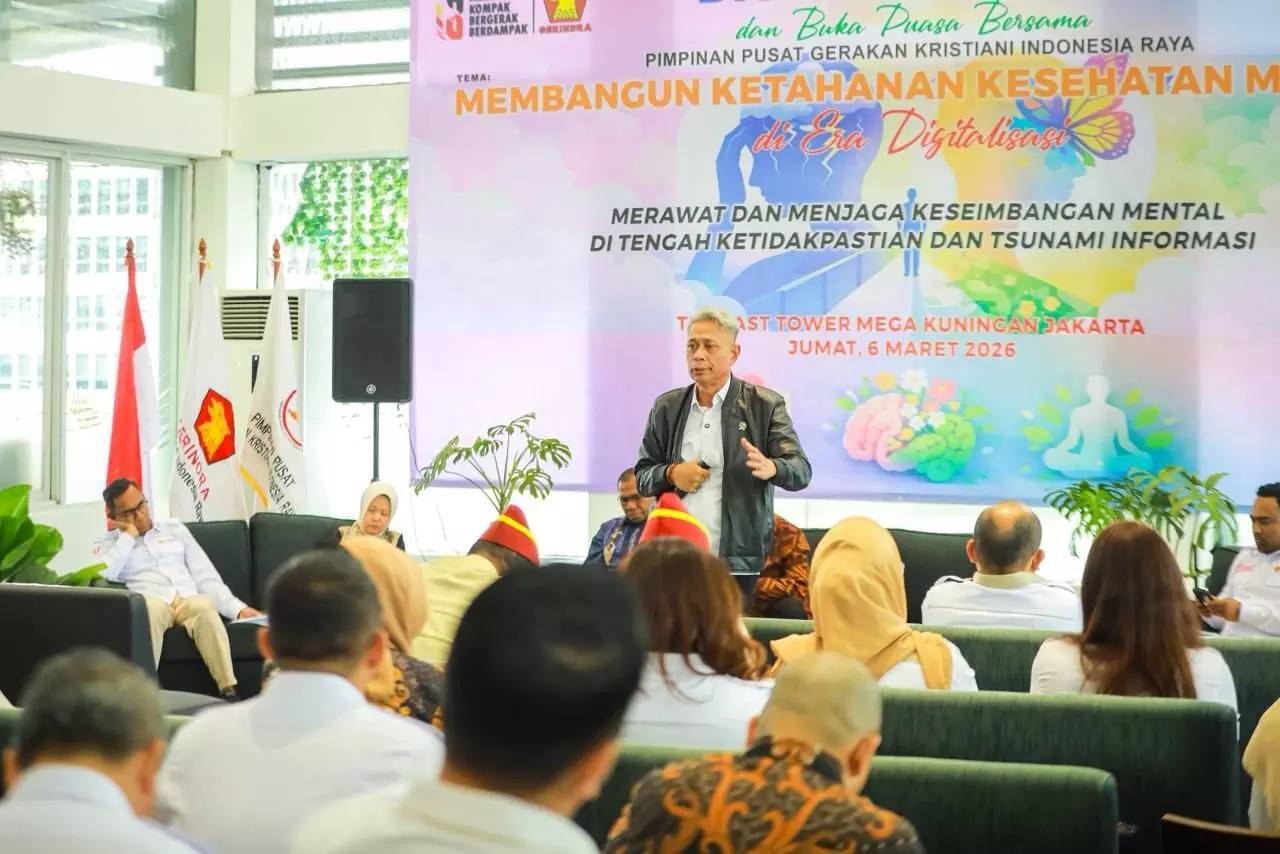Wakil Menteri Sosial RI Agus Jabo Priyono menjadi narasumber dalam diskusi publik dan buka puasa bersama yang diselenggarakan oleh Gerakan Kristiani Indonesia Raya (GEKIRA) di East Tower, Mega Kuningan, Jakarta Selatan, Jumat (6/3/2026).
