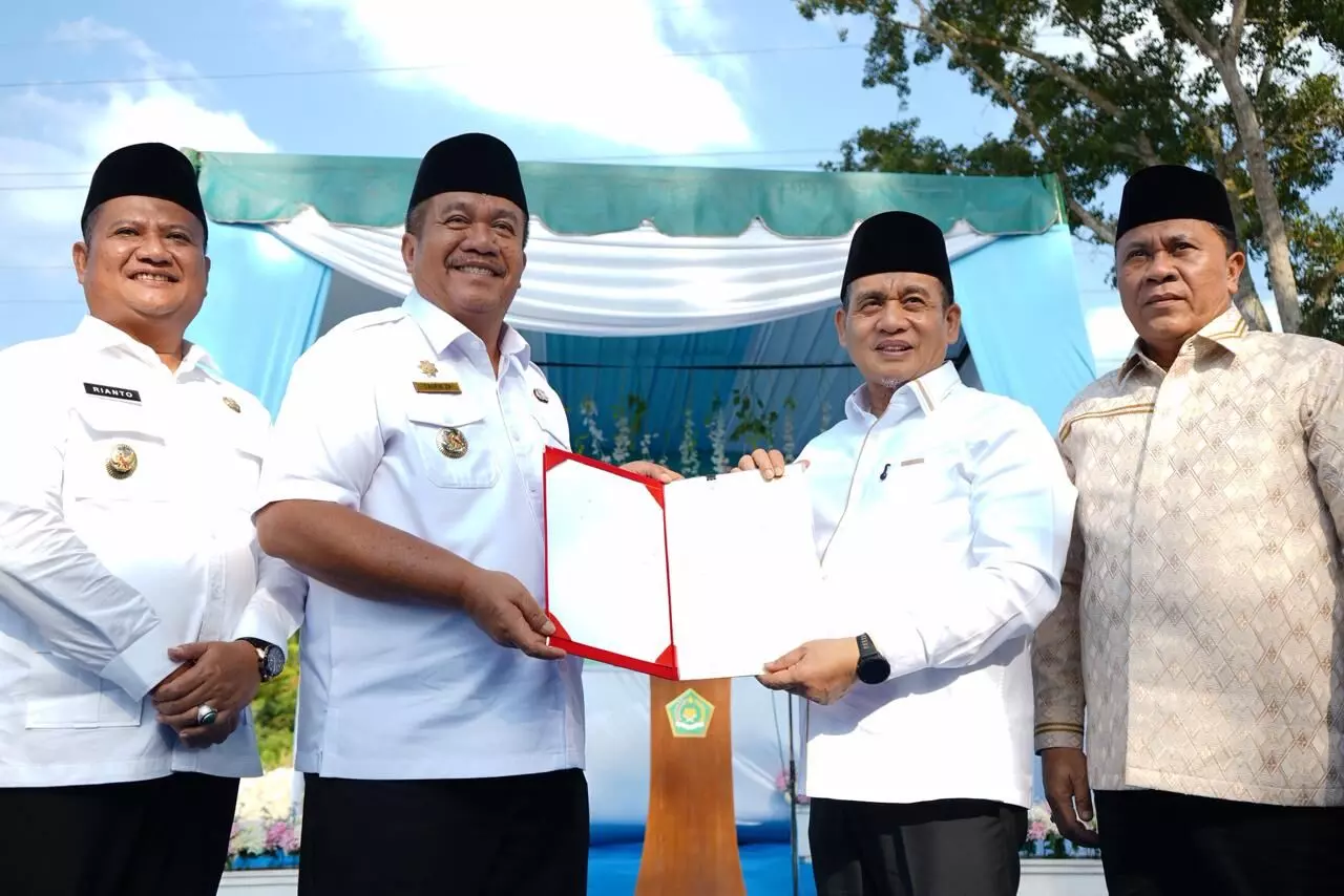 Wakil Menteri Agama (Wamenag) Romo Muhammad Syafi’i menerima sertipikat hibah tanah seluas 94.030 m² dari Pemerintah Kabupaten Asahan melalui Bupati Taufik Zainal Arifin untuk pendirian Madrasah Aliyah Negeri Insan Cendekia (MAN IC) Asahan sebagai bentuk kepedulian bagi peningkatan kualitas pembelajaran di Madrasah, Rabu (14/1/2026).
