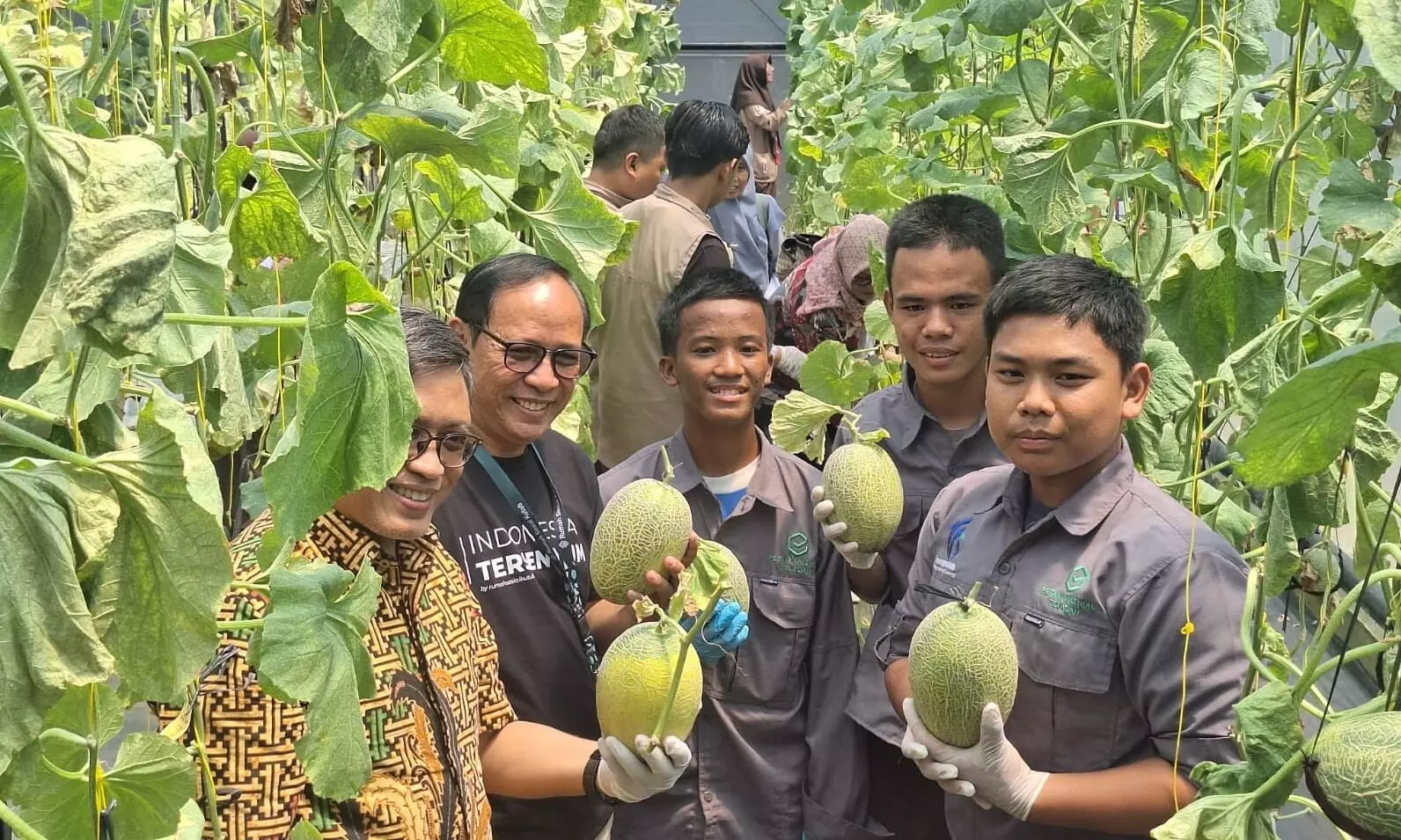 PT TGI-Rumah Sosial Kutub panen melon premium di SMK 63 Jakarta