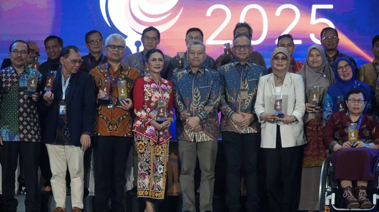 Menteri Pendidikan Tinggi, Sains, dan Teknologi Brian Yuliarto, Wakil Menteri Fauzan dan Stella Christie, hadir dalam agenda tahunan Kemendiktisaintek ini.