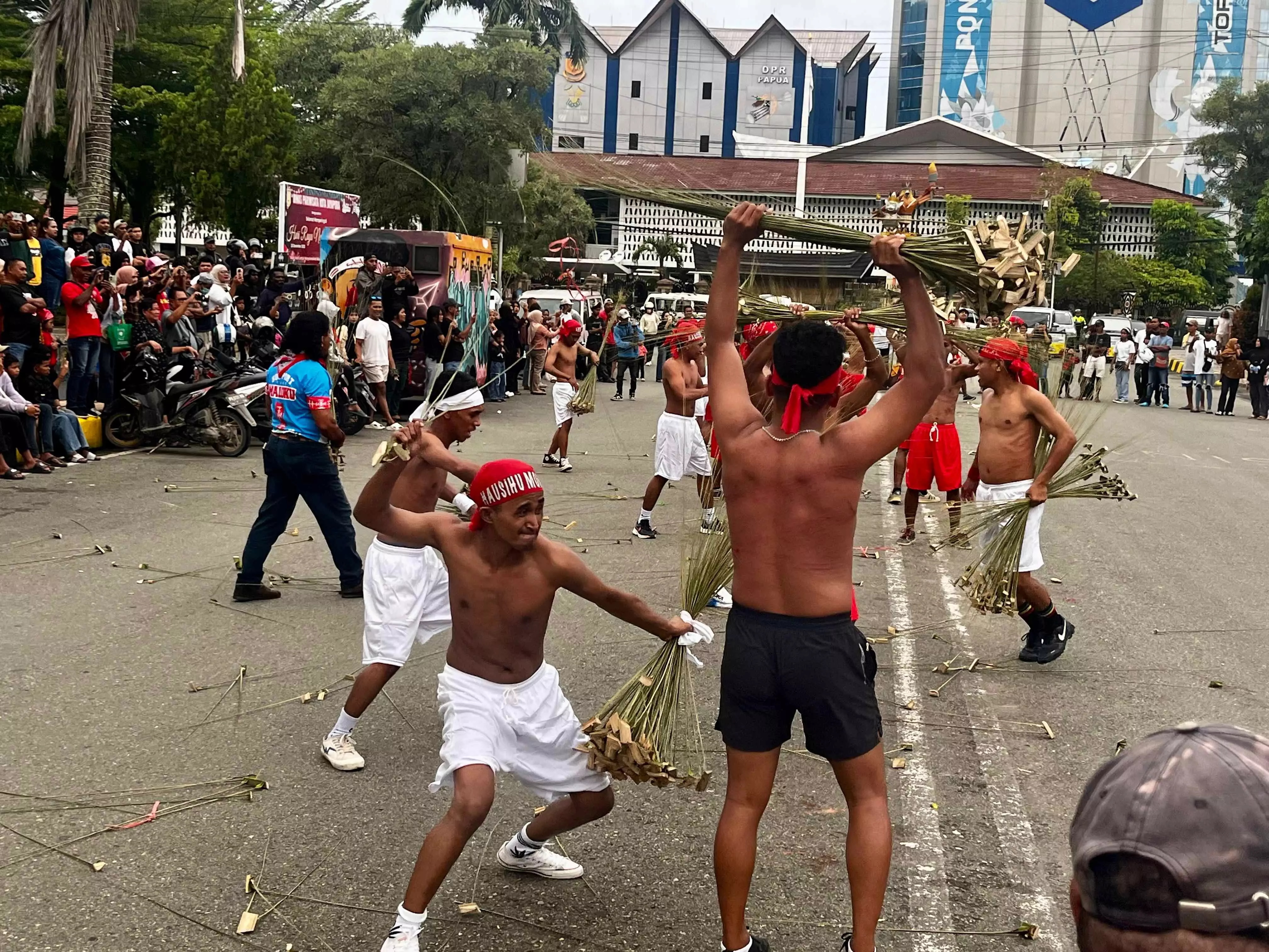 Sambut 7 Syawal, warga Maluku di Jayapura saling baku pukul sapu