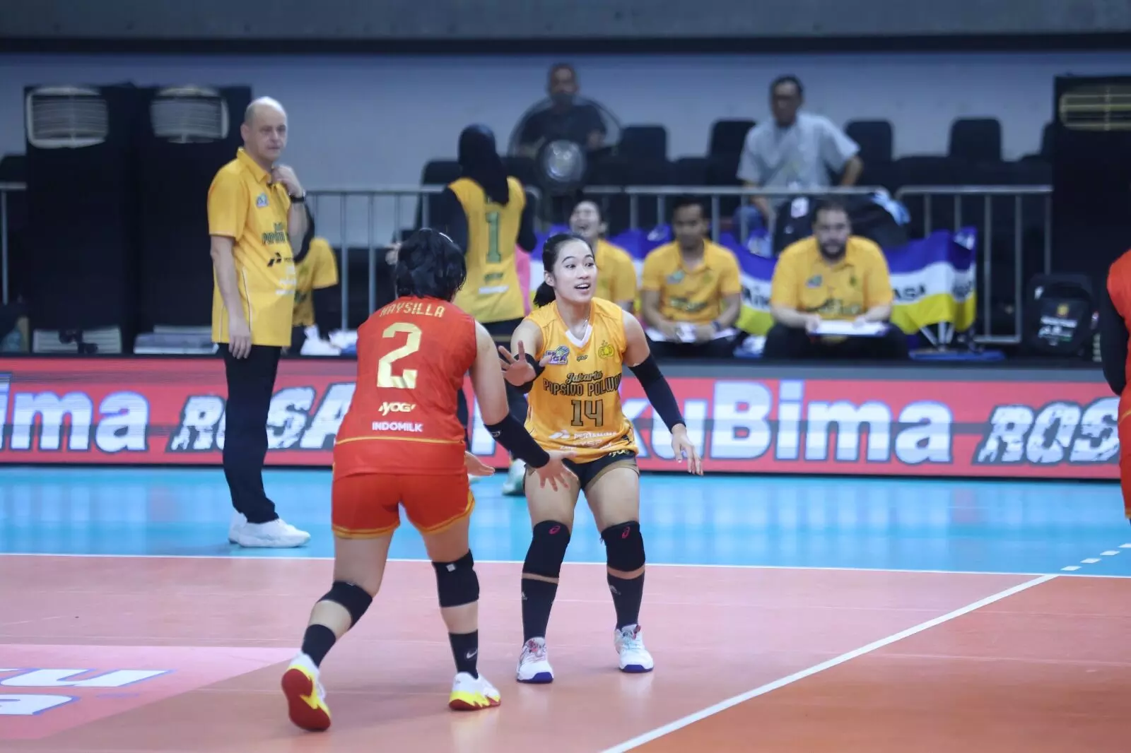 Sempat terkejar hingga angka 24-22, pelatih Darko Dobriskov mengambil time out taktis. Hasilnya, spike keras Malwina Smarzek memastikan set kedua milik Popsivo dengan 25-22, skor pun imbang 1-1.