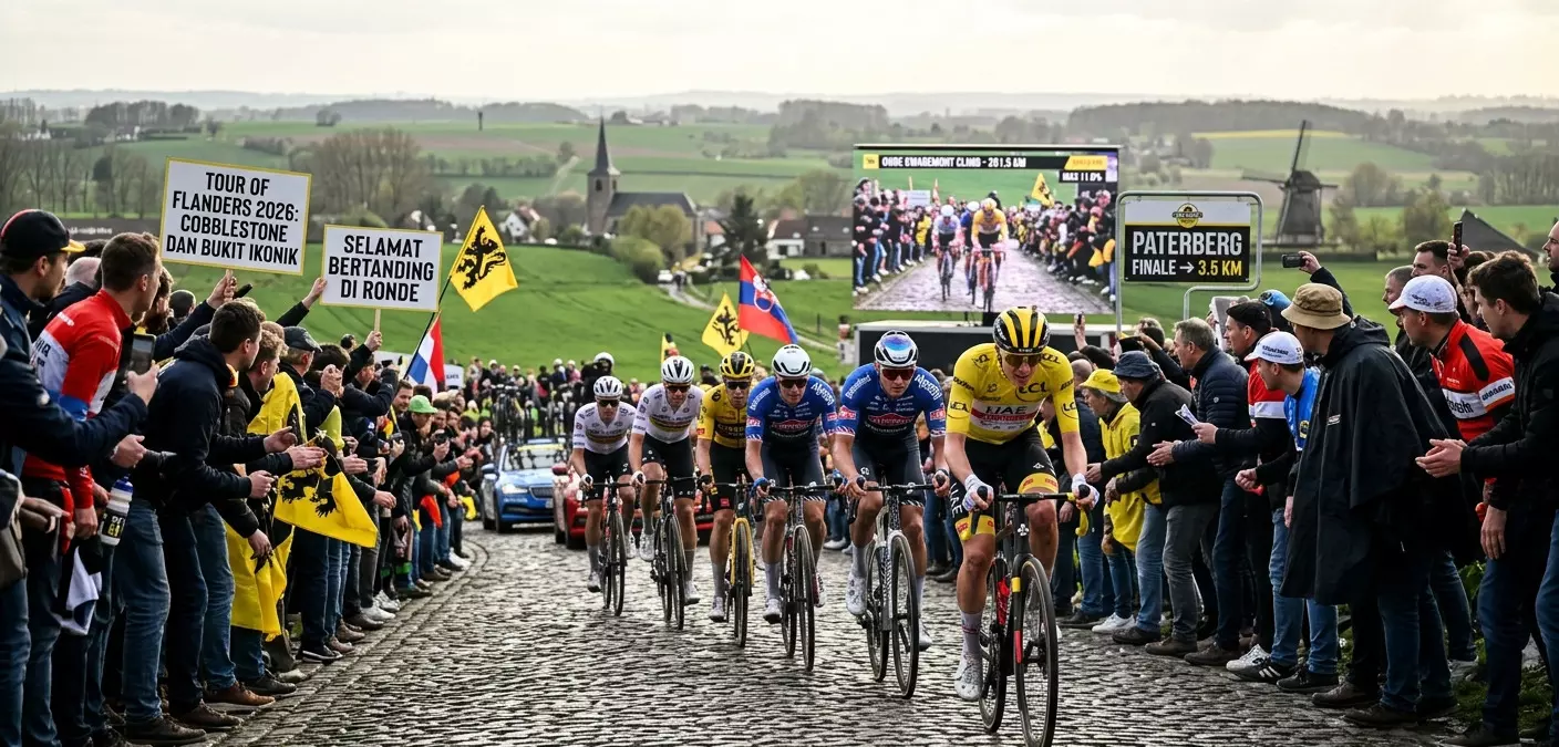 Rute Tour of Flanders 2026: Cobblestone, bukit ikonik, tanjakan klasik Oude Kwaremont & Paterberg di balap sepeda Belgia, strategi pebalap, dan fakta terbaru.
