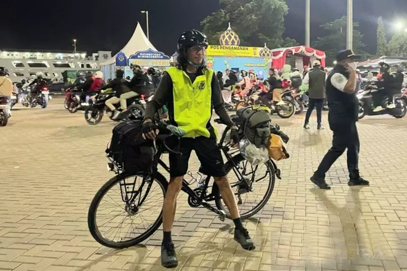 Pria asal Serpong, Tangerang Selatan ini saat ditemui di Pelabuhan Ciwandan, Cilegon, Selasa malam menunjukkan konsistensi luar biasa dengan memilih bersepeda sebagai moda transportasi utama menuju kampung halaman di Palembang, Sumatera Selatan.