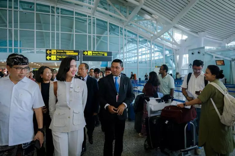 Menteri Pariwisata pada Kamis (1/1) mengunjungi Bali untuk meninjau penyelenggaraan pelayanan bagi wisatawan yang berlibur ke Pulau Dewata pada puncak libur Natal 2025 dan Tahun Baru 2026. Dia meninjau alur pelayanan di konter check-in, konter imigrasi, tempat makan dan minum, pusat suvenir, dan kantor bea cukai di Bandar Udara Internasional I Gusti Ngurah Rai, Denpasar, Bali.