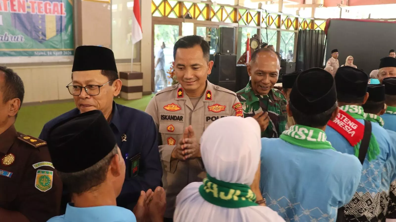 Suasana haru dan khidmat menyelimuti Pendopo Kabupaten Tegal saat prosesi pelepasan Jamaah Calon Haji Tahun 1447 H/2026 M, Selasa (14/4/2026). Kegiatan ini dihadiri oleh Wakapolres Tegal Kompol M. Iskandarsyah bersama jajaran Forum Koordinasi Pimpinan Daerah (Forkopimda), Bupati dan Wakil Bupati Tegal, serta perwakilan Kementerian Agama.