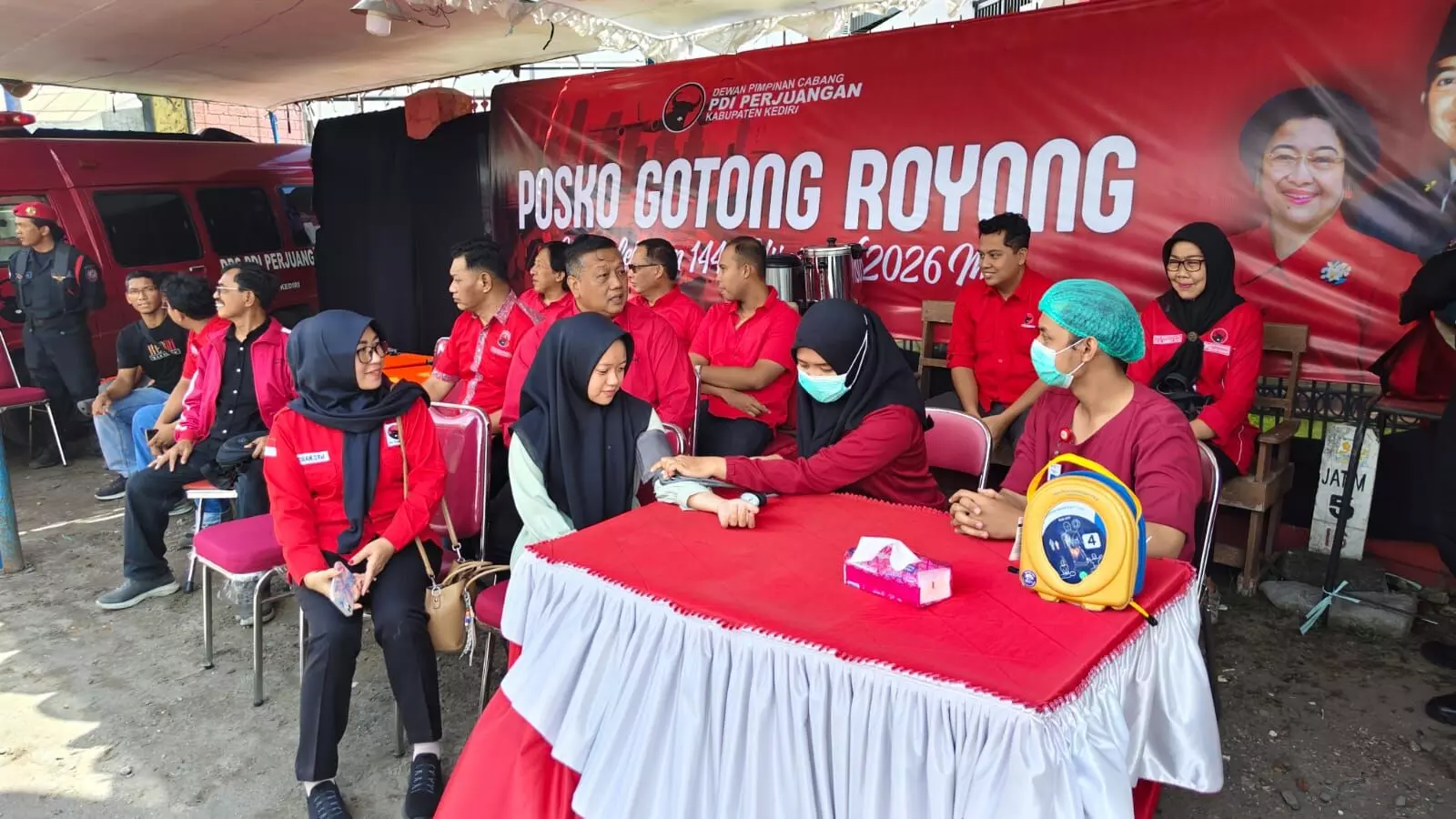 Pendirian Posko Posko Mudik Gotong Royong 2026 DPC PDI Perjuangan Kabupaten Kediri mendapat respon positif dari para pengguna jalan yang melintas dilokasi. Sejumlah pengendara yang melintas dilokasi sempat berhenti dan mampir untuk tes kesehatan.