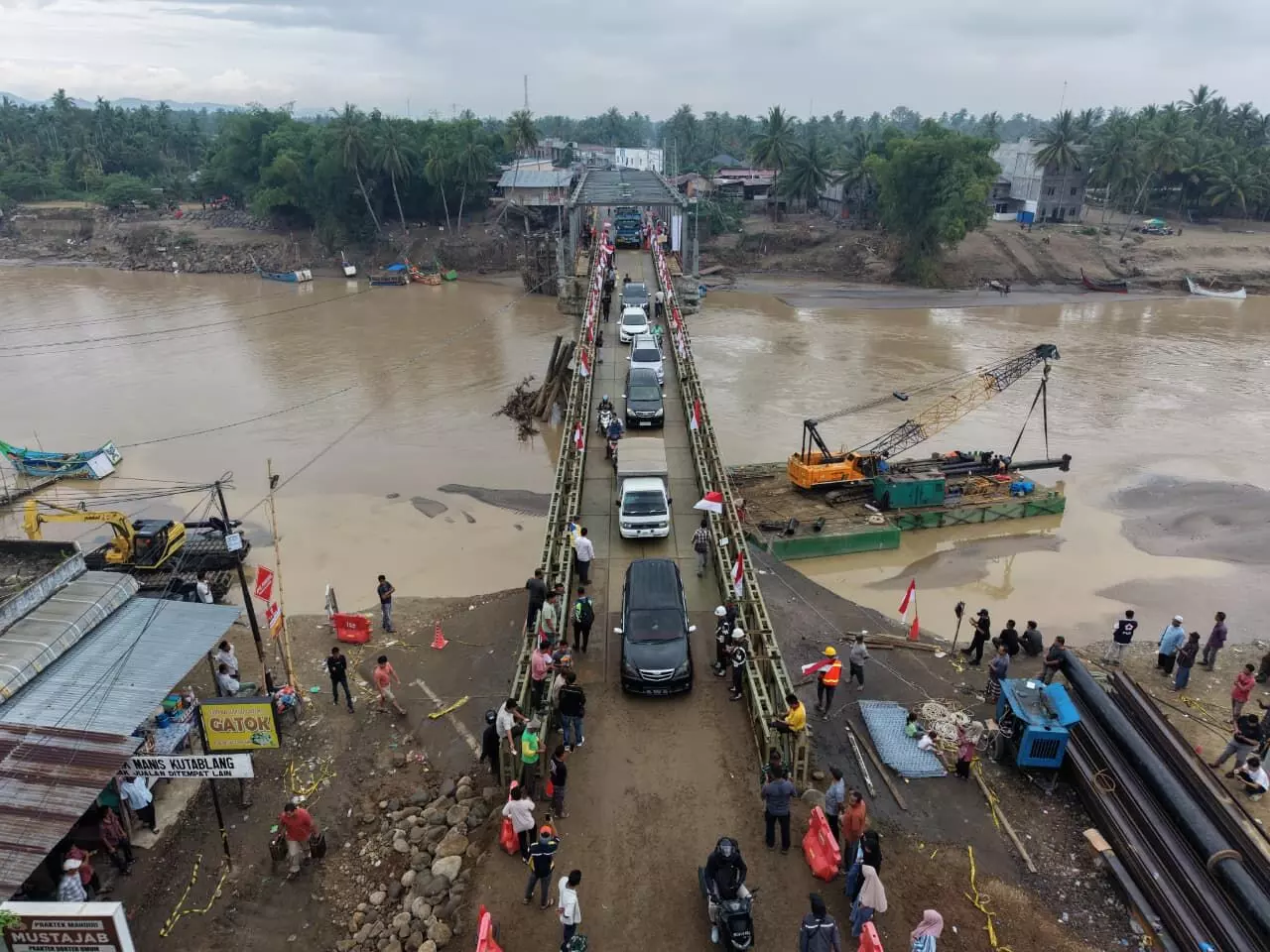 Adapun progres pembangunan jembatan Bailey di Aceh yakni Jembatan Teupin Mane, Teupin Reudeup, Jeumpa atau Cot Bada, Matang Bangka, dan Kutablang, Kabupaten Bireuen kini rampung seratus persen.