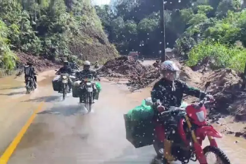 TNI gunakan motor salurkan paket logistik warga terdampak di Taput