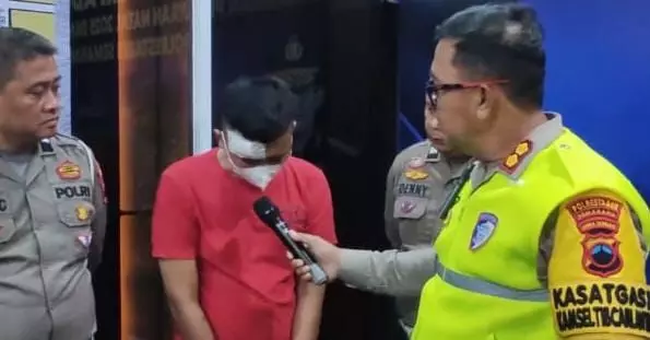Tersangka Gilang Insan Faruq yang juga menderita luka di kepala sisi kanan dengan suara terbata-bata meminta maaf kepada keluarga korban musibah di jalur tol tersebut.