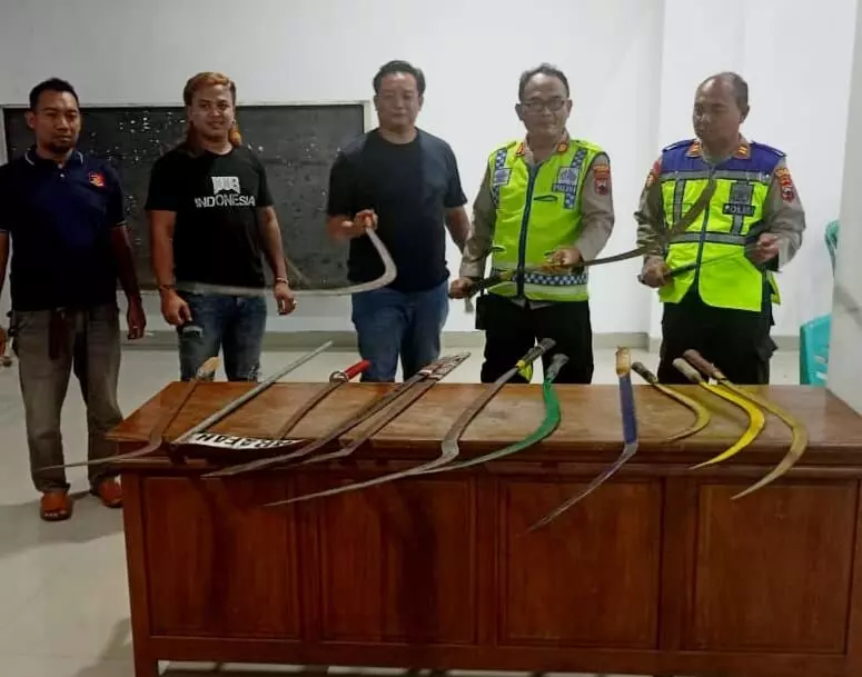 Aparat kepolisian yang mendapatkan informasi langsung bergerak. Dari tangan mereka polisi menyita Barang Bukti 14 sajam berbagai jenis dan ukuran. Sajam tersebut diketahui disembunyikan di kamar milik salah satu anggota kelompok.
