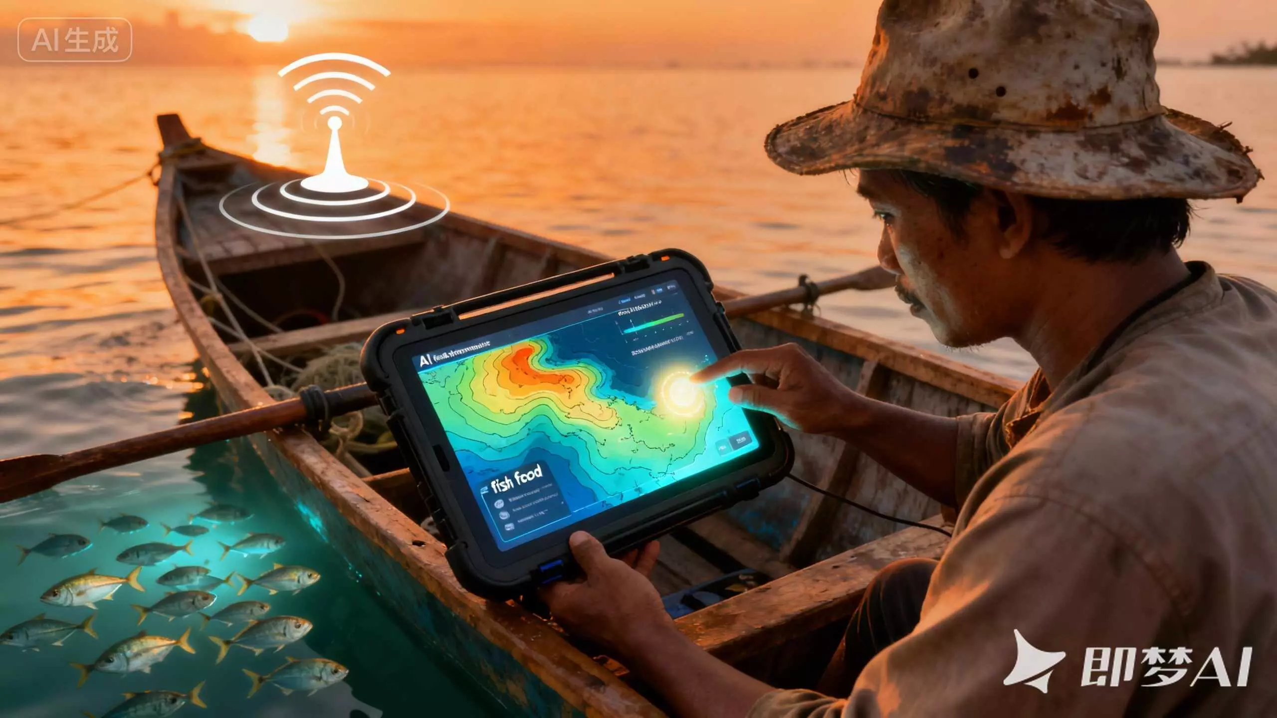 Saat senja, seorang nelayan Indonesia mengecek tablet tahan air di atas perahu kecil. Peta AI di layar tidak hanya menunjukkan suhu laut dan konsentrasi klorofil (makanan ikan) secara real-time, tetapi juga menandai zona penangkapan ikan yang disarankan yang menyala lembut. Sekolah ikan terlihat dari siluet sonar kapal. Teknologi tidak lagi jauh, ia menjadi "kompas digital" di tangan nelayan, membantu mengurangi pelayaran membabi-buta, melindungi daerah pemijahan ikan, mengantarkan perikanan yang diwariskan turun-temurun menuju era pintar dan berkelanjutan yang "tahu mengapa".