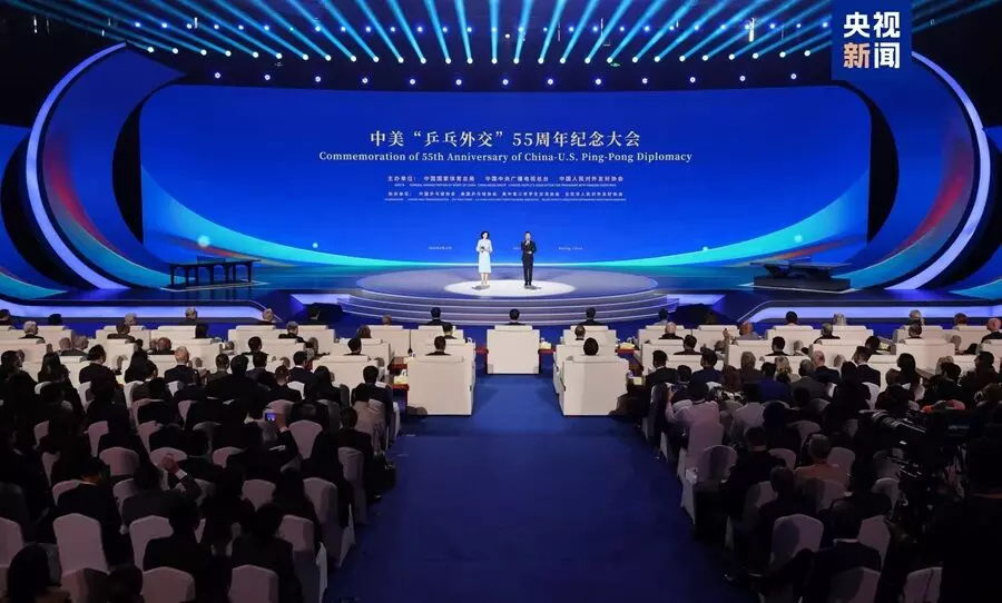 Acara peringatan 55 tahun "Diplomasi Pingpong" Tiongkok-AS diselenggarakan di Beijing pada Hari Jumat kemarin (10/4). Acara ini disponsori bersama oleh Administrasi Olahraga Nasional Tiongkok, China Media Group (CMG), dan Asosiasi Rakyat Tiongkok untuk Persahabatan dengan Luar Negeri, serta didukung oleh Asosiasi Pingpong Tiongkok, Asosiasi Pingpong AS, Asosiasi Pertukaran Pemuda Pelajar AS-Tiongkok, dan Asosiasi Persahabatan Rakyat Beijing dengan Luar Negeri.