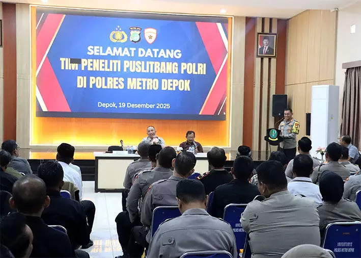 Tim Pusat Penelitian dan Pengembangan (Puslitbang) Polri melaksanakan kunjungan penelitian ke Polres Metro Depok pada Jumat, 19 Desember 2025.