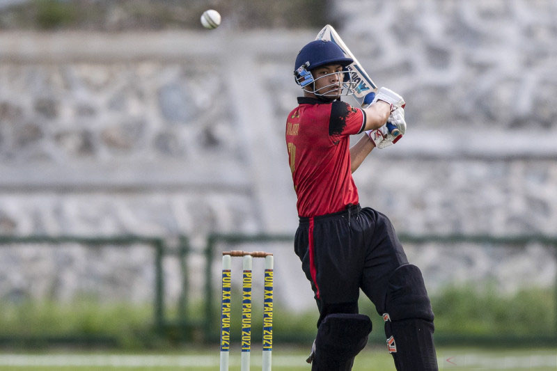 Pemain kriket putra DKI Jakarta M. Anjar Tadarus memukul bola saat melawan tim kriket putra Papua dalam penyisihan kriket grup A Super Eight putra PON Papua di Lapangan Kriket Madya, Kampung Doyo Lama, Kabupaten Jayapura, Papua, Selasa (28/9/2021) . ANTARA FOTO/M Risyal Hidayat/wsj. (ANTARA FOTO/M RISYAL HIDAYAT)Elshinta.com - Cabang olahraga kriket nomor Twenty-Twenty (T-20) PON Papua xx 2021 memulai laga Kamis (30/9) di Lapangan Cricket Doyo Baru, Kabupaten Jayapura, yang dibuka oleh pertandingan tuan rumah menghadapi Jawa Barat pada pukul 07:30 WIT yang dimenangkan tuan rumah 130-102.