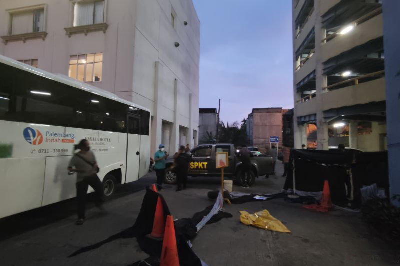 Jenazah korban bunuh diri di lantai dasar parkiran mobil kompleks pertokoan Palembang Indah Mal (PIM), Jumat (8/10/2021) (ANTARA/M Riezko Bima Elko P/21)Elshinta.com - Polisi memastikan seorang mahasiswa yang ditemukan tewas di lantai dasar parkiran mobil Kompleks Pertokoan Palembang Indah Mal (PIM) di Palembang, Sumatera Selatan, murni bunuh diri.